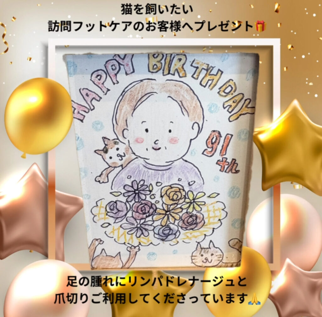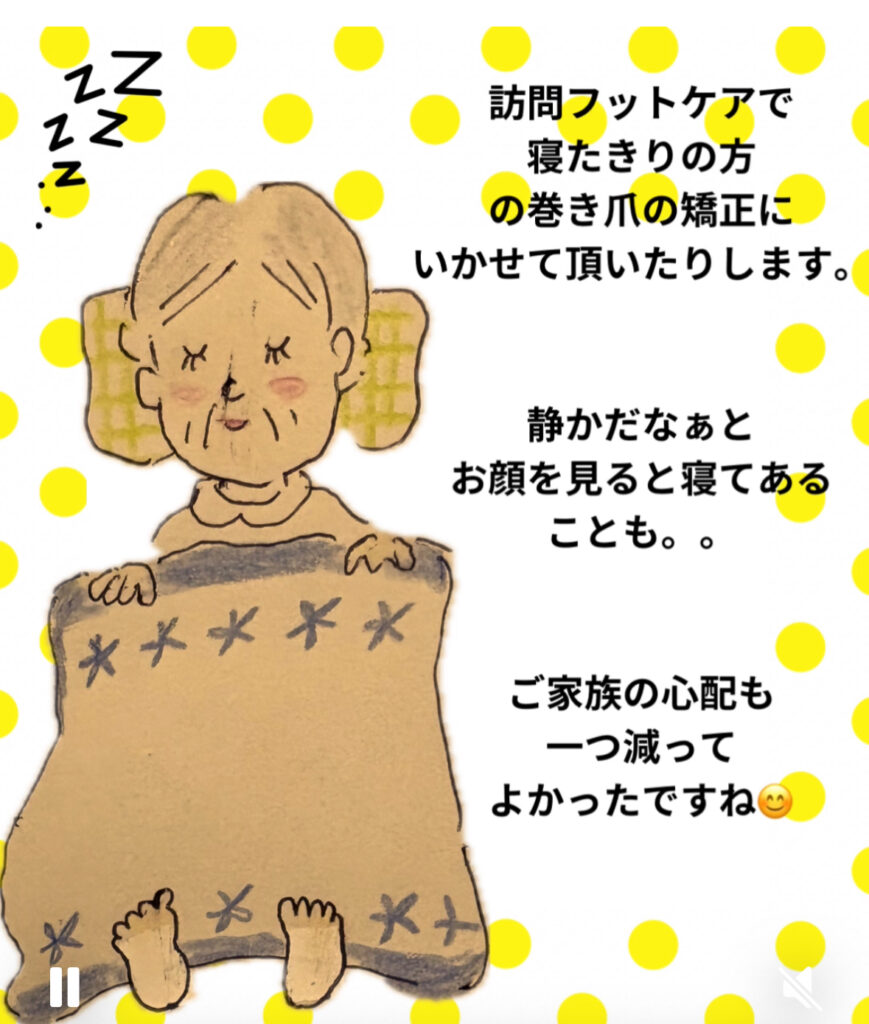 【福岡県宗像市】 足のナースステーション 癒 | 巻爪・タコ・魚の目・外反母趾 > 癒しのブログ 癒しのブログ 2025.11.13 『あら?気持ちいいね。』怖くないよフットケア 2025.11.12 『お母さん寝ちゃってる』 訪問フットケアで巻き爪矯正 2025.11.11 猫ちゃんに囲まれてハッピーバースデイ 2025.11.09 『ずっと探していたの』~毎月お会いできることに感謝~ 2025.11.04 『今日はいい日になったわ。』高齢ご夫婦の訪問フットケア 足のおはなし 「足のおはなし」一覧 カテゴリ お知らせ 教室・イベント情報 癒しのブログ 過去記事 2025年11月 2025年6月 2025年2月 2024年10月 2024年6月 2023年12月 2023年11月 2023年10月 2023年8月 2023年5月 2022年11月 2022年10月 2022年9月 2022年8月 2022年6月