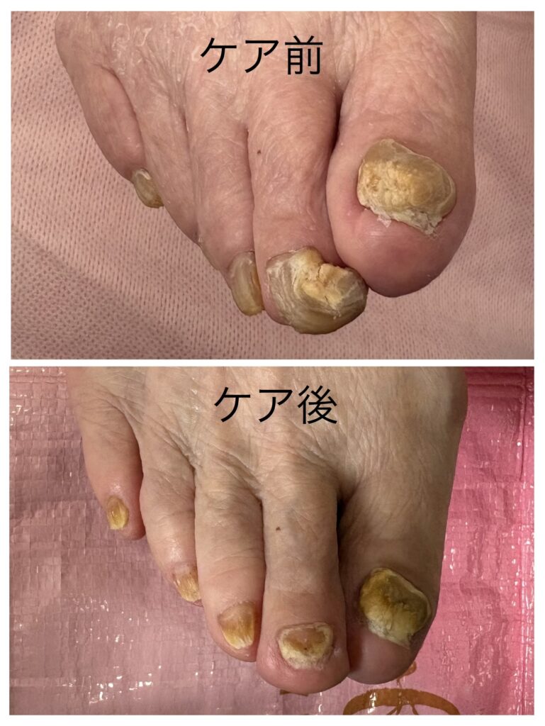 厚い爪でお悩みの方の訪問フットケア